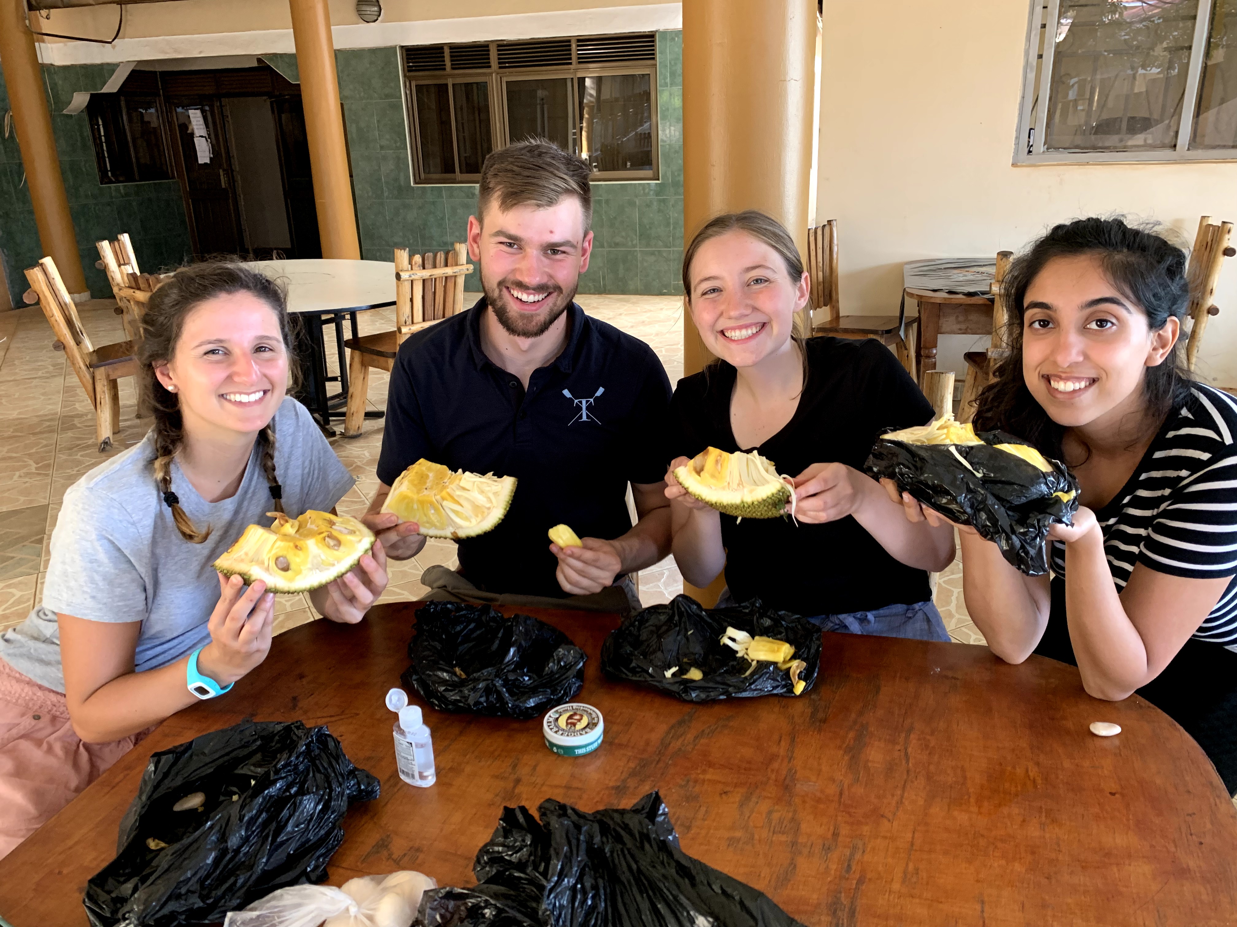 Over the past two days we have worked with Moses, our key contact in Iganga who is extremely well connected with individuals in several villages, and Justine, Paul and Lydia, our Lusoga translators, to set up user testing sessions and key informant interviews. Each morning we pile into our eleven person van and embark on a bumpy journey towards the next village on the agenda. Somehow Sneha always manages to secure a seat in the van with minimal chances of becoming airborne. We’ve driven through rural farms where community members grow sugar cane, corn, potatoes and G nuts (otherwise known as ground nuts or peanuts).